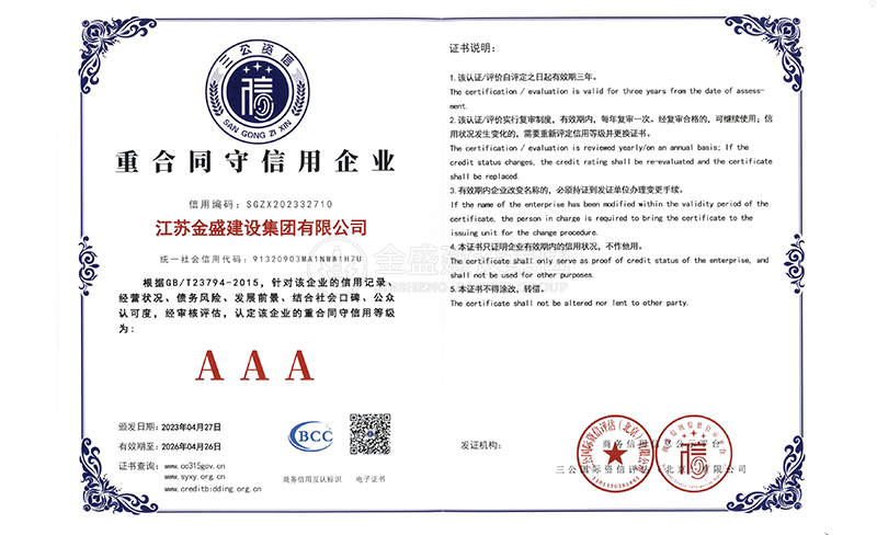 • 2007年江蘇省質量信得過安全穩定施工企業